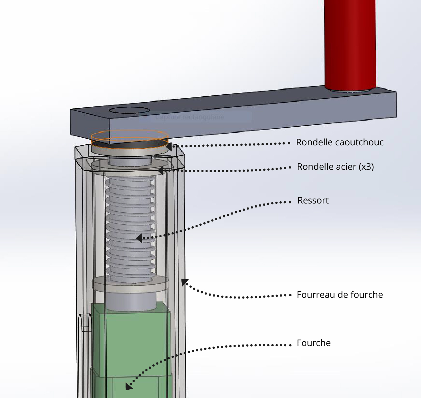 - Les renforts de chandelles des grandes roues ont été rendus plus compacts depuis le prototypage. (différence entre photos et vues 3D). - Le diamètre des roues jockey est peut-être un peu faible pour un bon roulement à 4 roues, chargé sur terrain cahoteux. Si le besoin de grandir ces roues est validé, il faudra peut-être un peu changer la structure avant du châssis.