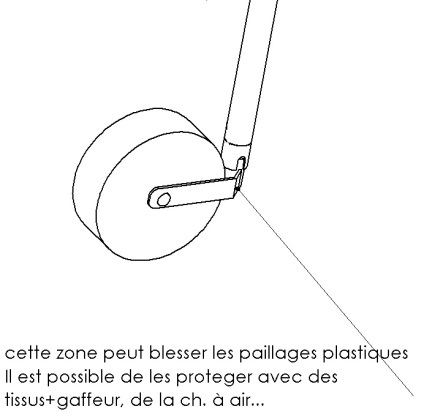 - Le chariot n’a pas vraiment de système de direction. Les 2 roues avant sont folles (type chariot de supermarché). Il faut valider à l’usage la fonctionnalité de ce système et il faudra peut-être de l’entrainement à l’utilisateur (dans quel sens prendre le chariot, pousser ou tirer ?).